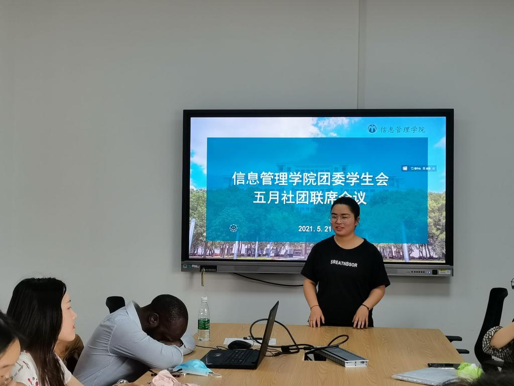 (通讯员 梁正霖 陈静怡) 5月21日,信息管理学院团委学生会社团联合部五月社团联席会议于南湖10038会议室顺利举行。本次会议由社联部长徐琳琳主持,秘书处负责人廖瑜璐作为嘉宾出席会议,各协会负责人、社团联合部部委参加了此次会议。此次会议主要回顾传统文化节的相关事宜,并对本月的工作进行了部署。