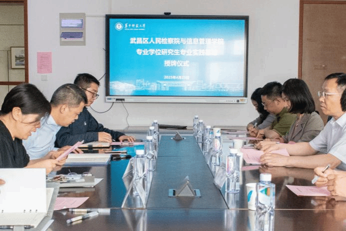 (通讯员 寇津赫 覃玉绒)为深化法学实践与信息管理学科融合,创新法治信息化人才培养模式,4月23日下午,武昌区人民检察院与信息管理学院专业学位研究生专业实践基地授牌仪式在南湖综合楼10003会议室举行。双方将共建专业实践基地,推动资源共享、协同育人,助力法治中国建设与数字化治理能力提升。