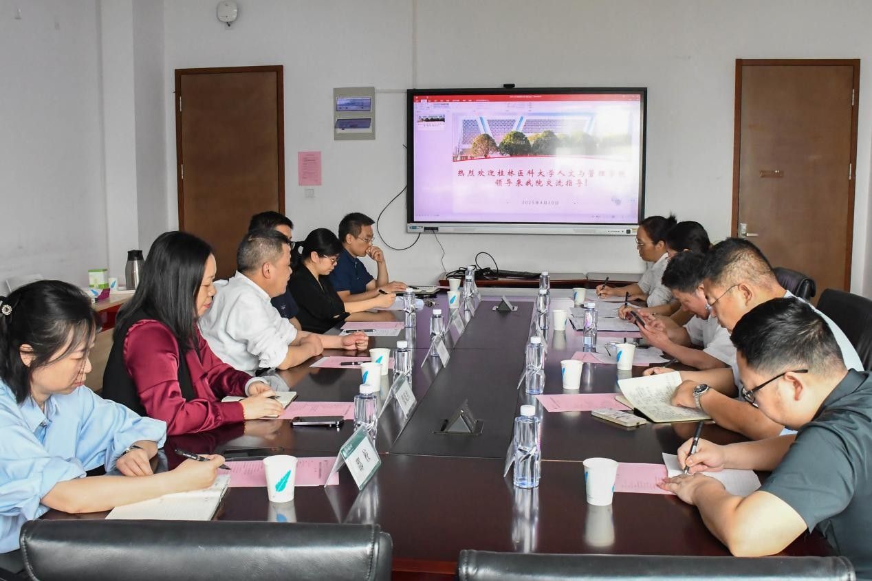 座谈会上,双方围绕图情专硕人才培养的五大核心议题展开研讨:课程体系设置、培养方案优化、学科评估经验、实训基地建设及就业质量提升。曹高辉全面介绍了信息管理学院的专业建设成果与发展规划。随后,石武祥系统阐述了桂林医大人文与管理学院的学科布局、发展现状及面临的挑战,为后续两院合作奠定基础。