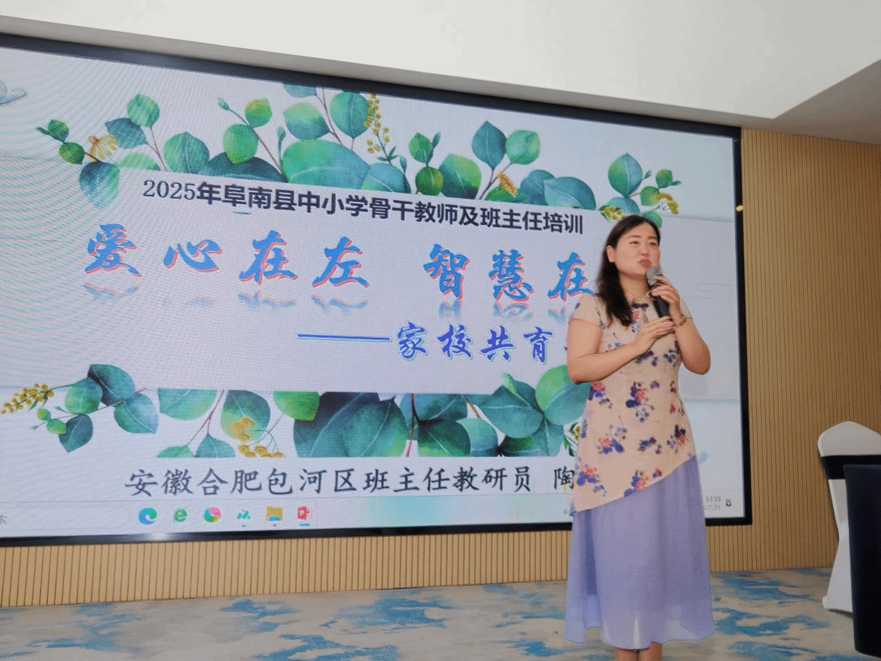 (通讯员 徐柳)2025年7月20日,由华中师范大学信息管理学院承办的安徽省阜南县中小学骨干教师及班主任培训班正式开班。本次培训为期6天,在安徽省合肥市内分两个会场开展,共有二百四十余位中小学骨干教师及班主任参与。本次培训旨在通过专家引领和同仁交流,提升教师的专业素养及综合能力,帮助他们明确职业方向、坚定职业信念,夯实教育教学基本功。
