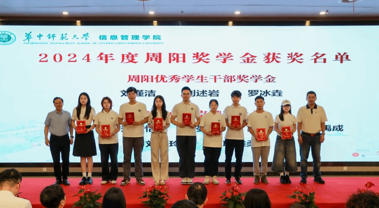 在周阳奖学金颁奖环节,2024年度周阳奖学金获奖人员风采视频展让观众们领略了获奖学生在学生工作、外语能力、生涯规划能力等多个领域的出色风采。李方红宣读了周阳优秀学生干部奖学金、周阳单项卓越奖学金表彰文件。本年度共评选“周阳奖学金”10 人,共支出2.9万元。杨军、曹高辉分别为获奖学生颁发了证书。