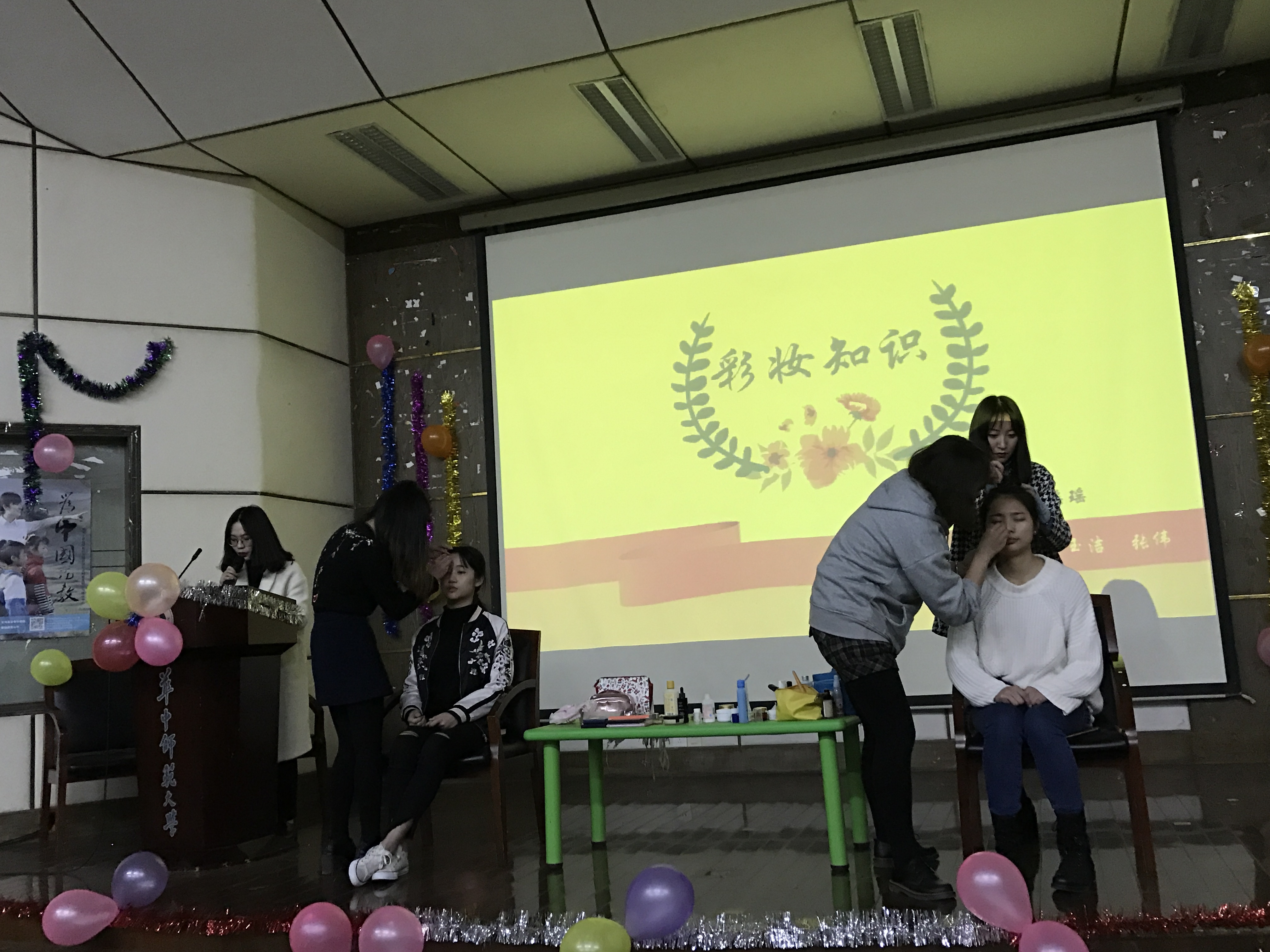 在化妆讲座开始之前,我院16级的男生纷纷向女同学们送上女生节的小礼物。很多女同学纷纷表示,收到礼物非常惊喜,感受到来自同学的温暖情谊。