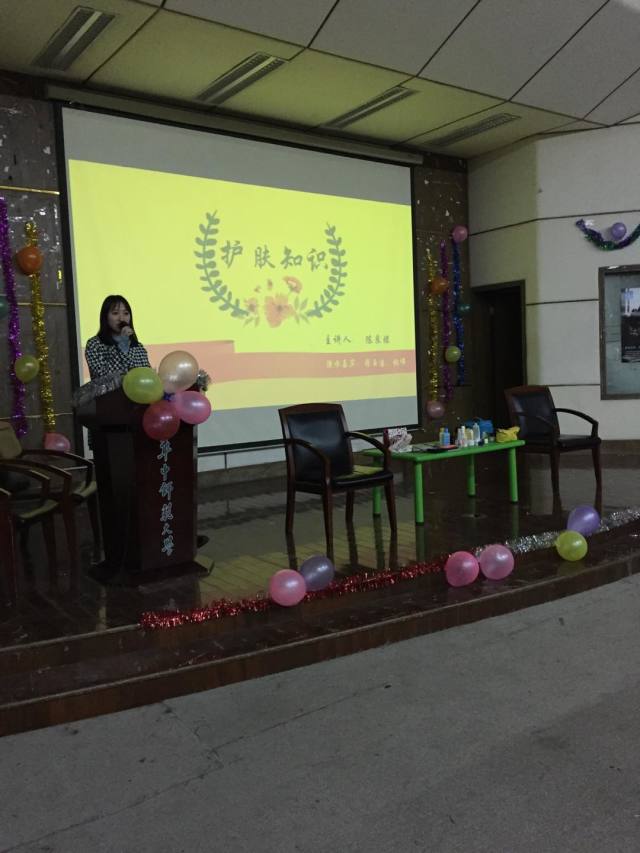 本次讲座邀请到的主讲团队——柚莉Ucomely,是信管之星优秀创业团队,实力与经验兼备,曾为湖北广播电台圣诞年会、湖北高校艺术节、院迎新晚会等多个大型活动提供过化妆服务。她们热情地接受了院团委学生会邀请,为16级的女同学们讲授基础护肤及彩妆知识。
