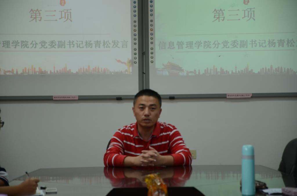 会议第三项是杨书记发言,他认为作为当代大学生应该认真学习十九大的相关精神,并把精神贯彻落实到每一个人,勇敢肩负起历史赋予的光荣使命,走对路、扎实干,让青春在实现中华民族伟大复兴中国梦的生动实践中焕发出绚烂的光彩,对于实现中国梦青年人人有责。谈到我院的就业问题,他认为我们赶上了一个充满机遇的时代,认为作为当代大学生的我们应志存高远,不能将眼光局限于本校,而应该向往更广阔的天空,把自己培养成为中国特色社会主义建设添砖加瓦的高素质人才。最后他对团学干部提出了三个具体要求:定位准确,以服务大众为原则,不断提升自己的能力来锻炼自己;转变思路,以创新思维看待问题,以创新方式解决问题;经验分享推广,传承项目,吸收经验,以“传帮带”的方式继承发扬优秀精神。