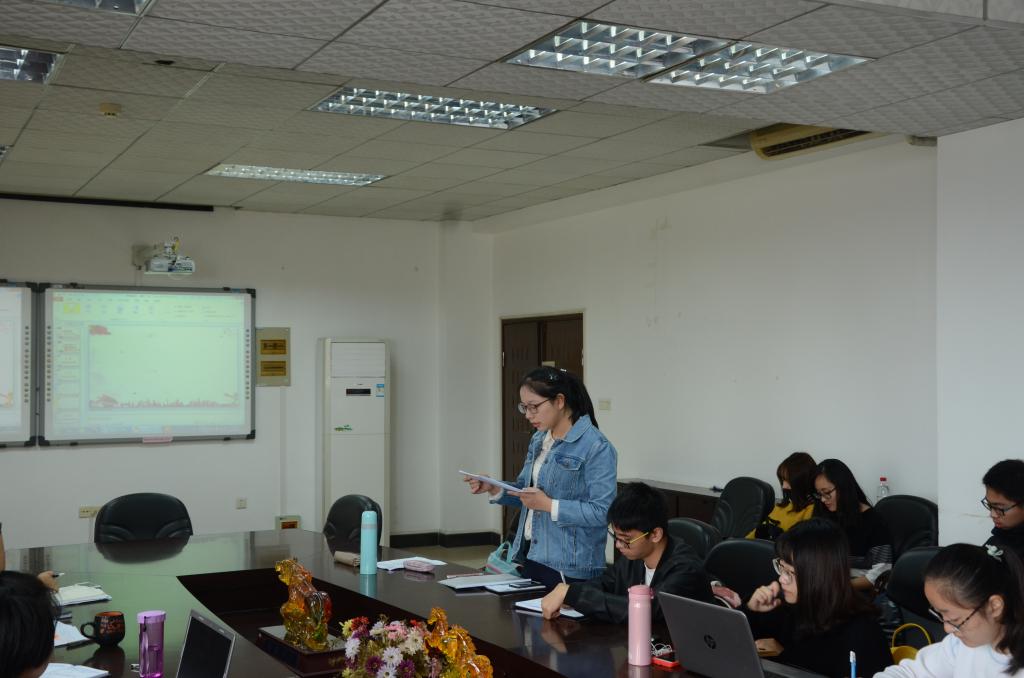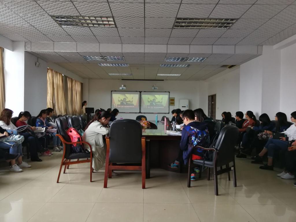 在视频结束后团学干部发言开始讨论环节。首先发言的是院团委副书记姚玉佳,她提出作为一名当代大学生应该为建成全面小康社会,做出我们自己的贡献。接下来是院学生会主席陈紫宇发言,她表示我们应该把握历史机遇,将个人梦与中国梦紧密结合,不忘初心,砥砺前行。接着组织部部长吴逸姝发言表示:我们要结合总书记对当代大学生的期许,培养正确的社会价值观。