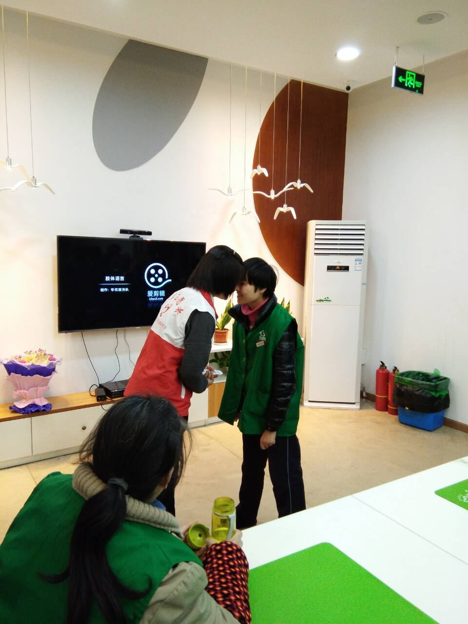 下午三点左右,由志愿者们带领残疾人朋友进行了《谁是卧底》、《泡泡糖粘哪里》的游戏。首先由志愿者周紫娟、杨媛惠为服务对象们做示范。之后残疾人朋友们运用自己的所学、所知、所闻参加到游戏中去,场景十分热闹。在开心之余,达到了游戏本身的目的,增强了志愿者与残疾人朋友们之间的友谊。