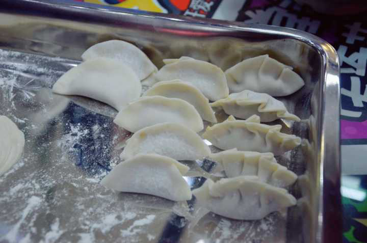 各班后勤组同学早早地来到食堂,为大家分配好座位,领取了饺子皮、饺子馅、清水、碗筷等材料。活动开始后,同学们都热情高涨,纷纷挽起袖子,跃跃欲试。来自全国各地的同学们有着不同的风俗习惯,包出来的饺子也形状各异,但这并不影响同学们享受集体的快乐与温暖。很多同学动作娴熟,包出的饺子卖相极好,也不乏高手挑战环或花式的新式饺子。少数不会包饺子的同学也虚心求教,包的有模有样。在大家的努力下,饺子数量的增长就甚为可观。