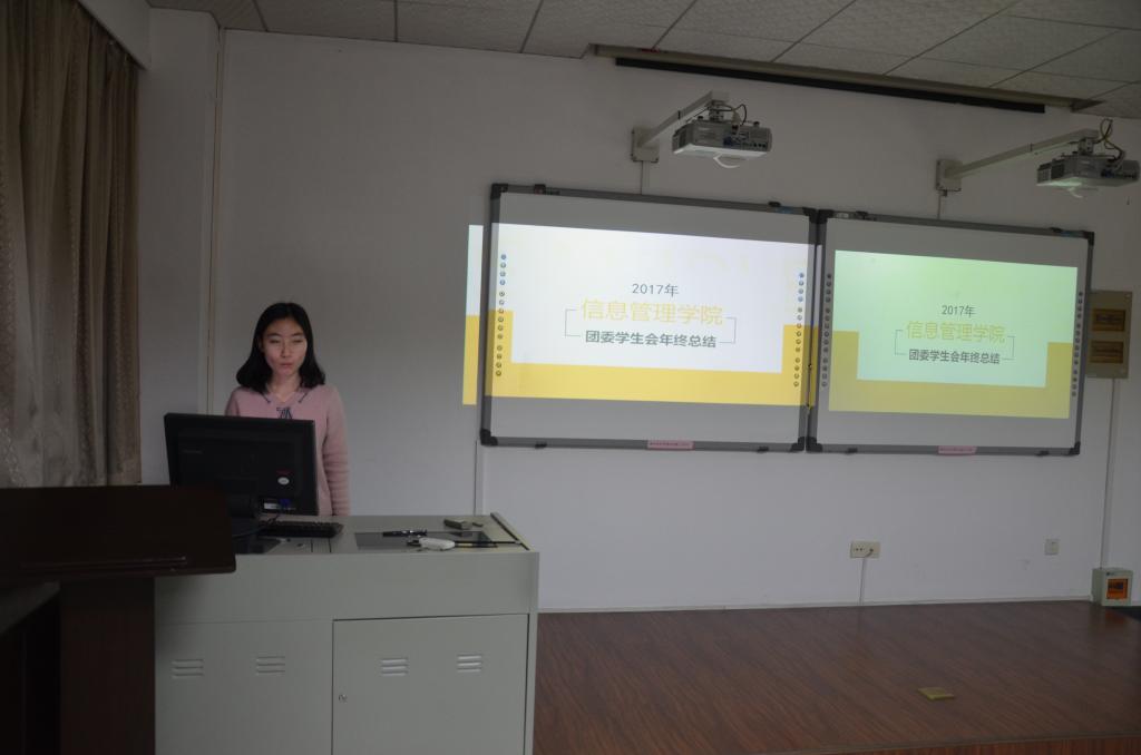 陈紫宇表示很荣幸能和院会的各位一起努力,然后她总结道今天的活动是对一个学期部门的总结和成果的展示,为的就是各部门之间相互吸收相互借鉴,也是对本学期工作长处的精彩展现和问题的经验总结,希望大家能更加努力把信管团委学生会发展得更好。