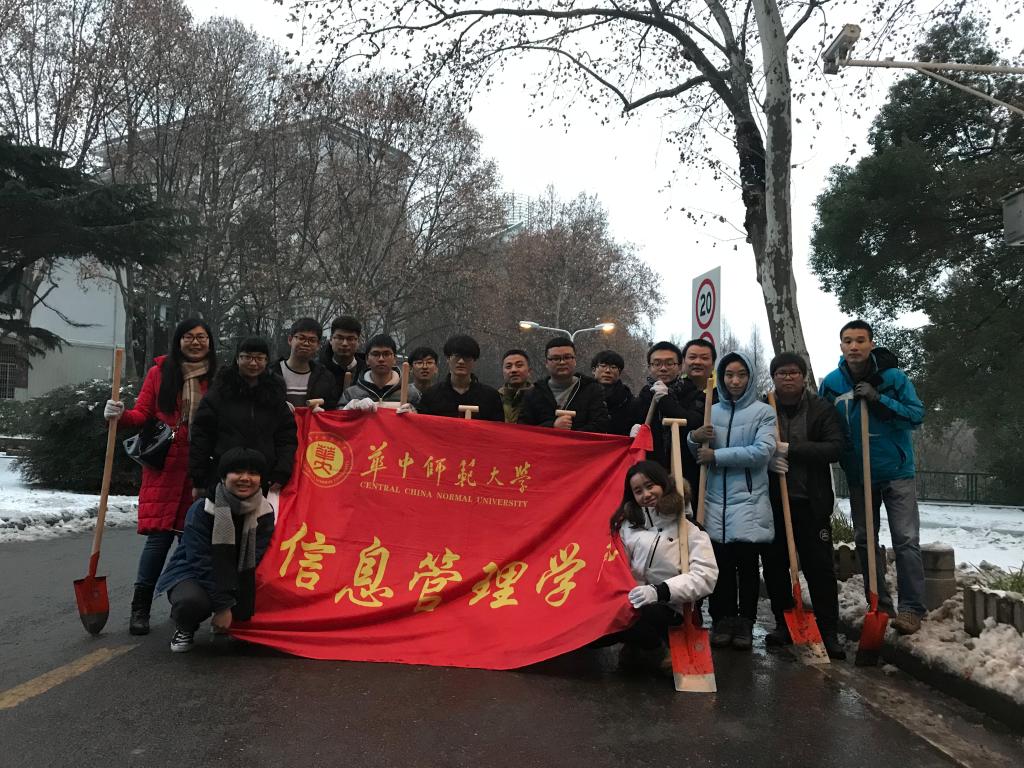 (通讯员 张学偲)近日,武汉地区迎来了两场大雪,路面积雪超过10厘米,冰雪将校园装点出了银装素裹的绝佳美景,却也给外出的同学们造成困难。为减少师生们外出的不便,畅通归家路,1月28日下午3点——6点,信息管理学院的老师们积极响应学校号召,自备铁锹,镐头等铲雪工具,带领同学们组成除雪队伍,主动清理路上的积雪。