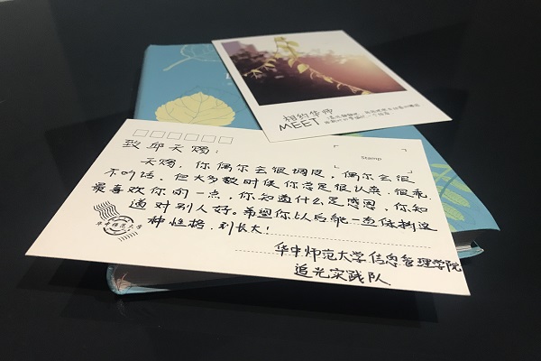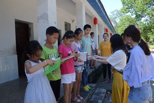 实践队负责人田聪娇提前召集各班班主任集合,介绍颁奖流程,由各班班主任及代课老师共同选出表现优秀的同学,列队进行颁奖仪式。了解到当地孩子们课外书籍的缺乏,实践队的成员们特地准备了精美的课外书和有华师特色的明信片,并在卡片上附上了自己的临别赠言,拿到奖品的孩子们脸上洋溢出幸福的笑容。颁奖结束后,各班班主任与获奖的同学合影留念,记住美好瞬间。
