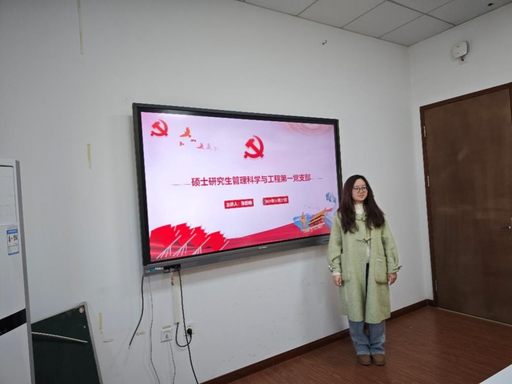 (通讯员 饶玉洁)2025年11月27日,硕士研究生管理科学与工程第一党支部于南湖综合楼10042会议室成功举办了十一月主题党日活动。本次活动由组织委员张若楠同志主持,旨在引导支部党员深入学习贯彻党的最新会议精神和重要指示,强化理论武装,明确前进方向。
