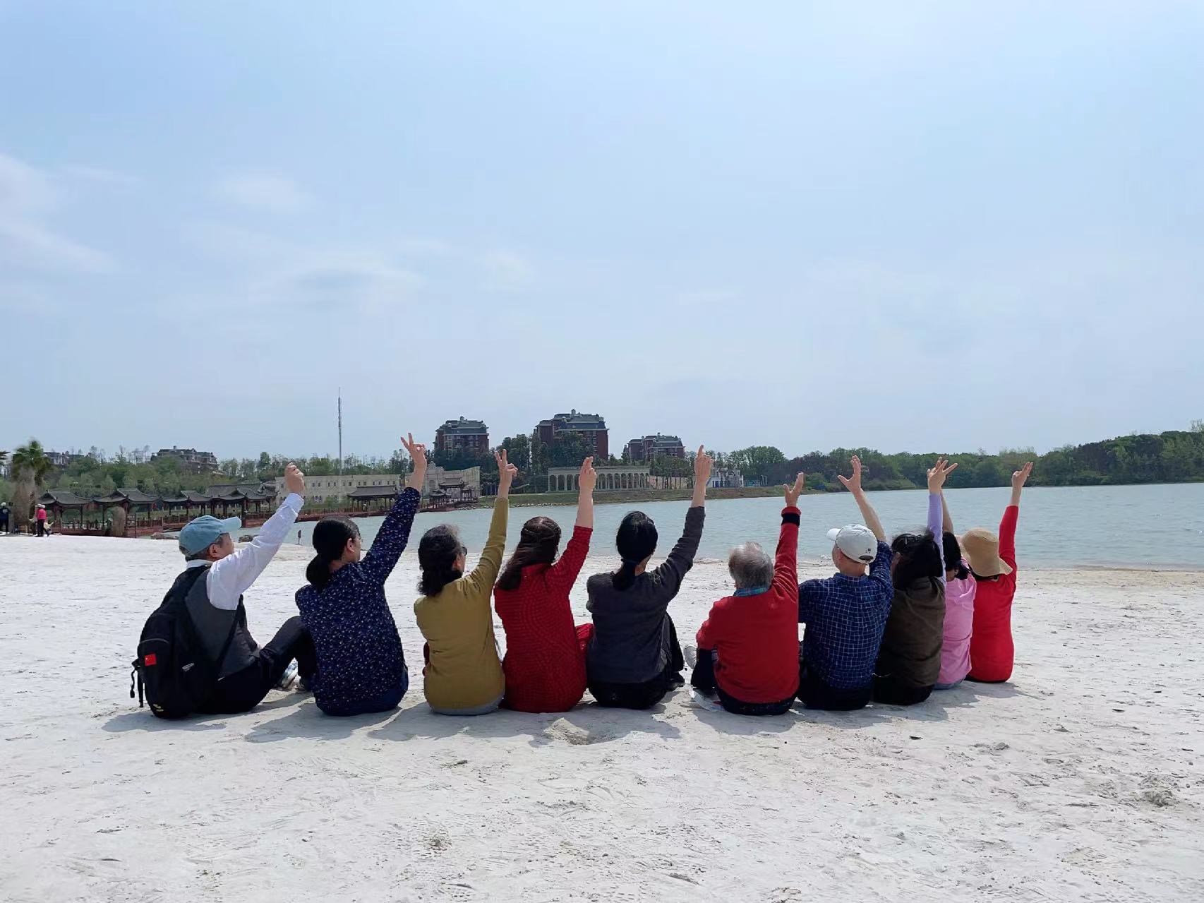 随后来到湖边的白色沙滩,银白的沙子柔软细腻,一扬即飞,温暖的阳光和挺直的棕榈树相映成景,眼前就是漫漫无际的碧水。老同志们沐浴在春日暖阳之下,徜徉在清馨美景之中,显得格外舒畅、愉快,纷纷在此处留念打卡,留下自己的倩影。