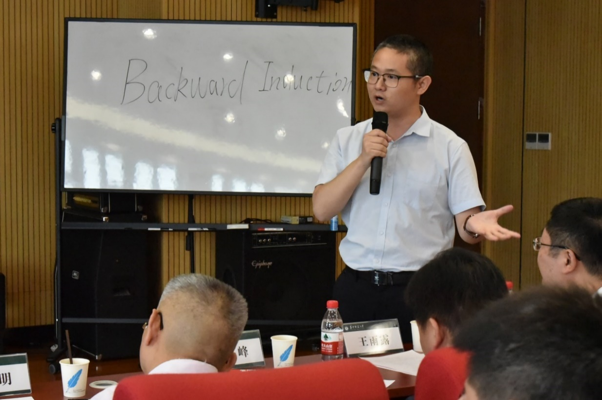 第四个登场的是电子商务系的陈鹏宇老师,陈鹏宇老师选择的是《动态博弈中的逆向推导法》,陈老师通过与同学们进行趣味的博弈游戏互动,并分析其中的博弈过程,充分地调动了学生的课堂积极性,寓教于乐。