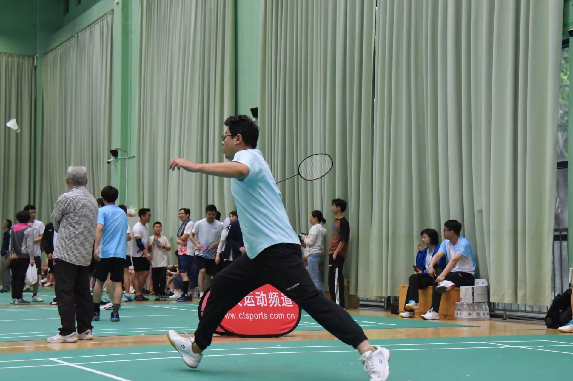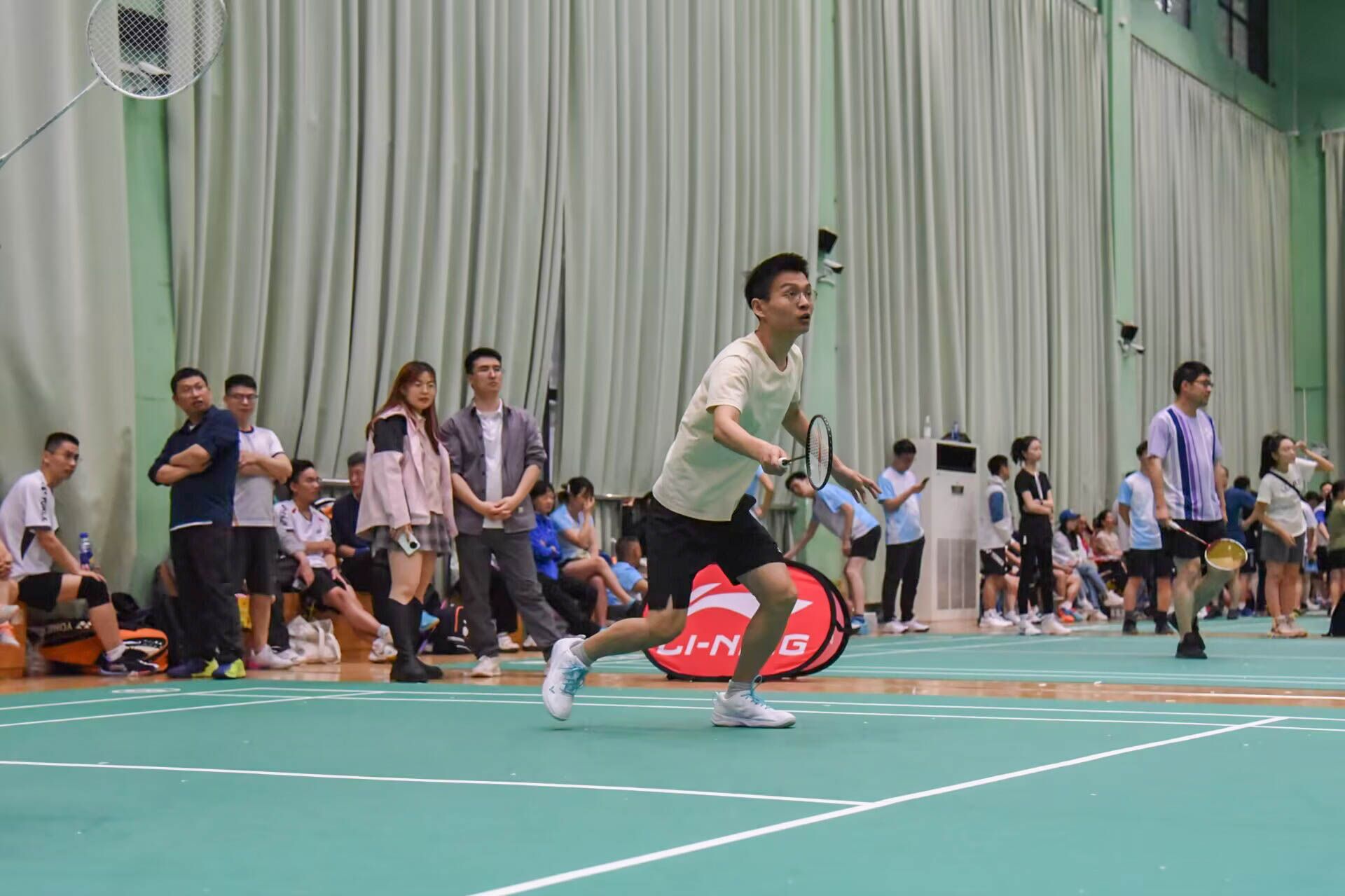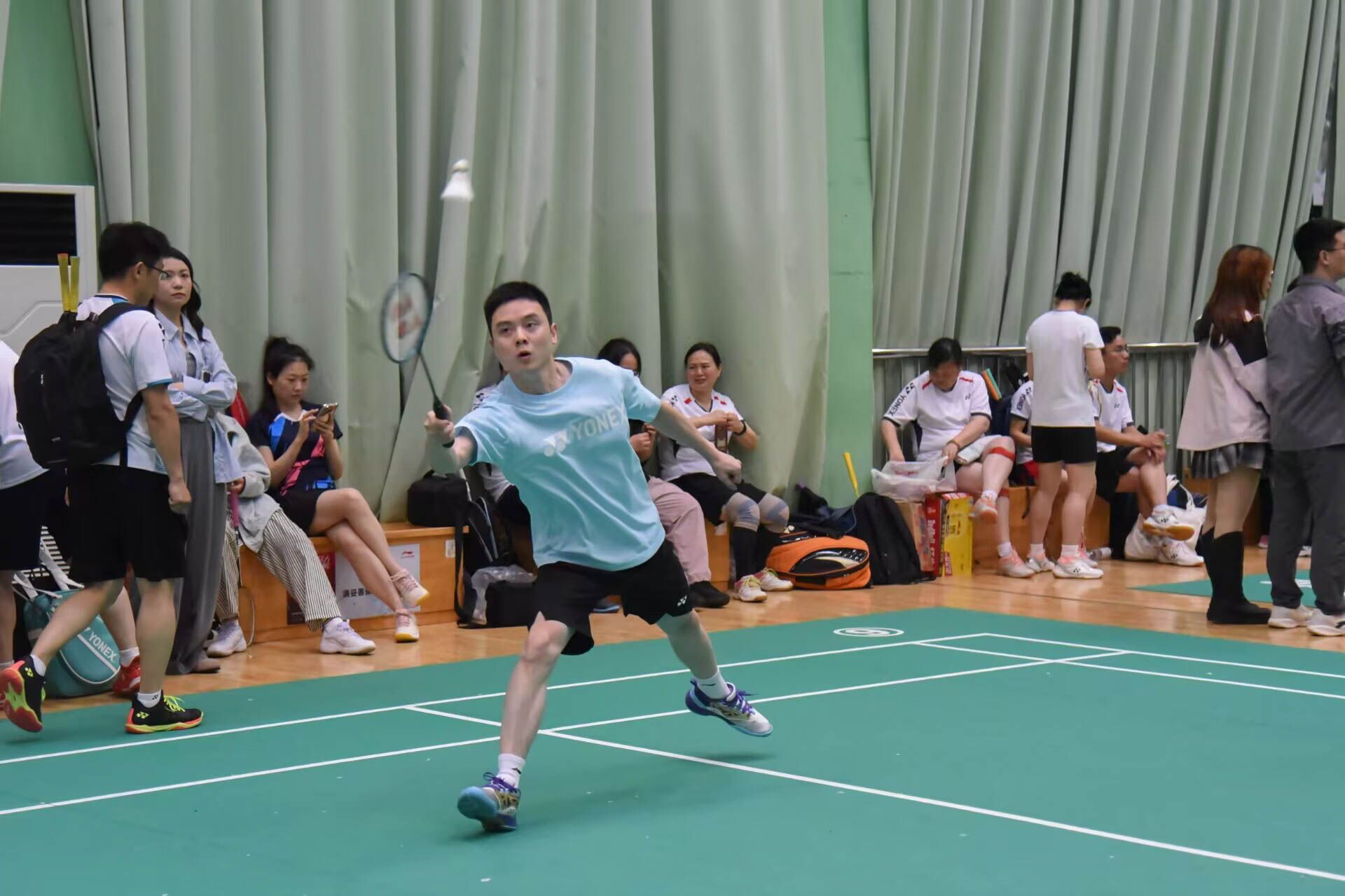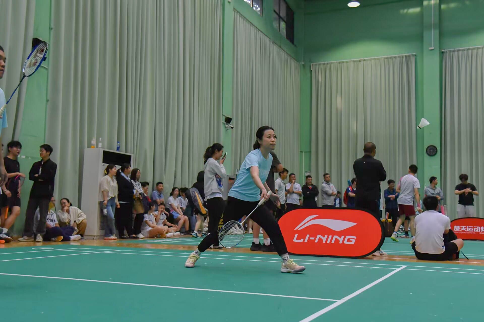 5 月 9 日下午 14:00,随着清脆的发球声响起,比赛正式打响。赛场上,双方队员迅速进入状态,白色的羽毛球在空中穿梭飞舞,高远球、平抽快挡你来我往,令人目不暇接。老师们配合默契,时而巧妙吊球打乱对方节奏,时而发起凌厉扣杀压制对手。