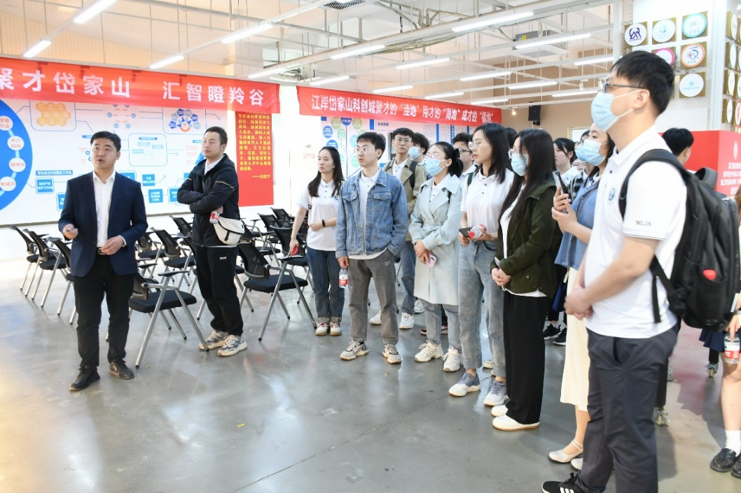 所有同学和老师落座后,工作人员详细介绍了岱家山科创城的创新创业孵化链条、运营模式、“校器企金介”对接机制和相关服务。为增强同学们对知识产权相关内容的了解,讲解员设置了答疑环节,老师和同学都积极参与,提出了科创城提供哪些知识产权服务、科创城支持大学生创业采取的机制和科创城如何了解企业需求等问题,讲解员耐心解答。