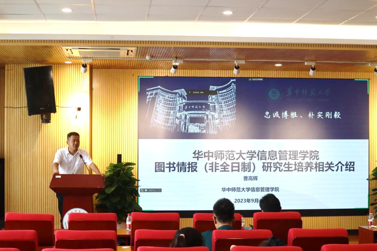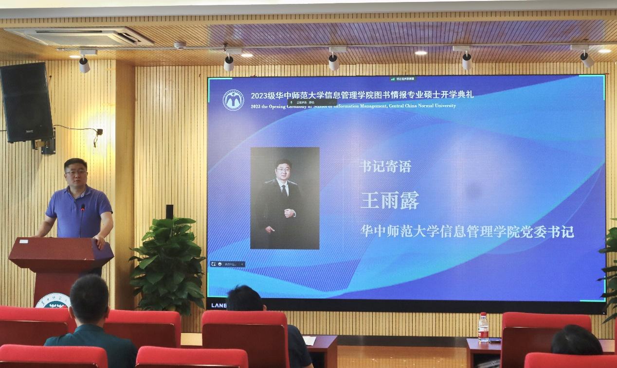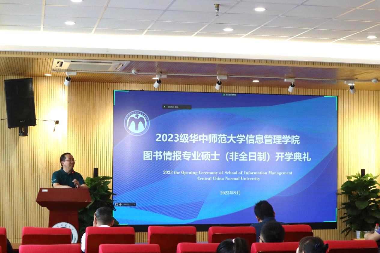 (通讯员 路雅丽 郑潇潇)云天收夏色,木叶动秋生。为欢迎2023级图书情报专业硕士新生加入信息管理学院大家庭,帮助新生更快更好地了解信息管理学院,适应新的学习环境,9月4日下午,华中师范大学信息管理学院在综合楼10001报告厅举行2023级信息管理学院图书情报专业硕士(非全日制)开学典礼。信息管理学院院长李玉海,信息管理学院党委书记王雨露,信息管理学院副院长曹高辉及教师代表出席典礼,全体2023级图书情报专业硕士(非全日制)参与典礼。图书情报专业硕士(非全日制)教育中心主任谭春辉教授主持典礼。