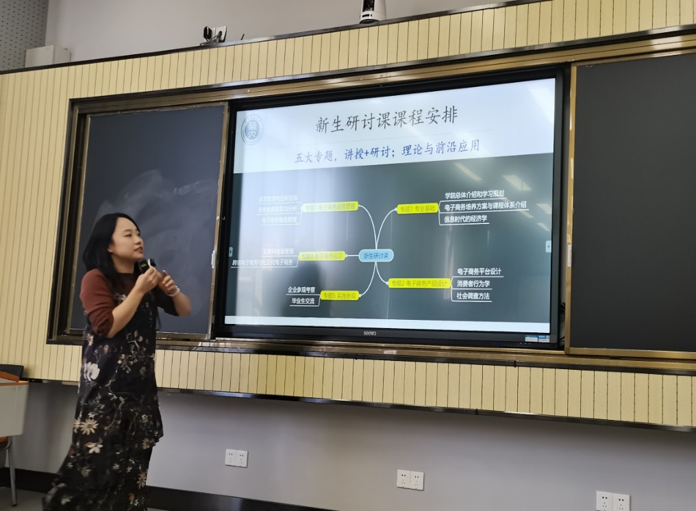 2021级电子商务专业全体学生参加了电子商务专业系主任张珺老师讲授的《电子商务专业知识体系与培养方案》研讨课。