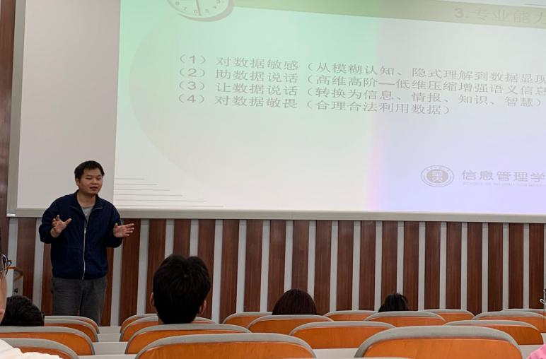 2021级管理科学与工程专业全体学生参加了信息管理与信息系统系主任陈静老师讲授的《信息管理与信息管理专业介绍》研讨课和大数据管理与应用系主任叶光辉老师讲授的《大数据管理与应用专业培养方案介绍》研讨课。