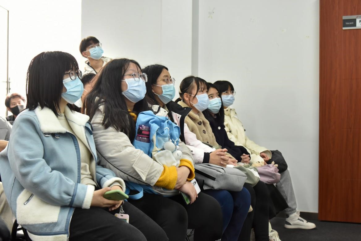 在交流环节后,华中师范大学20级毕业生,目前就职于神州数码云基地的肖倩做了分享交流。简单自我介绍后,肖倩告诉了同学们自己选择信息管理学院的初衷,并向同学们分享了自己的个人发展经历。接着,她引导同学们明确自己的方向,制订小目标,思考自我发展方向。同学们认真倾听,仔细记录。