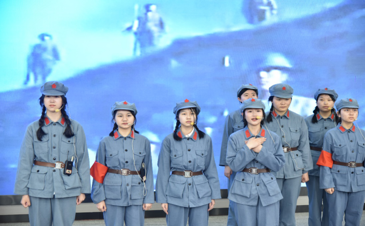 首先进行展示的是2104团支部的《跨越时空的信笺》。对未来目标迷茫的小董通过一封信与小超进行了一场跨越时空的对话,小超的追梦之旅让她明白了有价值的人生不止拘泥于一种形式,尽己所能也是为社会做贡献。2101团支部带来的情景朗诵剧《穿越时空的对话》讲述了“八女投江”的故事,新时代的青年们与在战争中浴血奋战的革命前辈对话,在对话中他们明白了自己的时代责任和担当。
