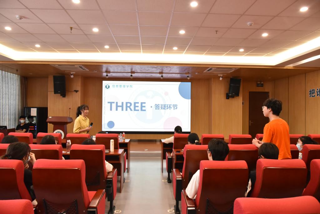 (通讯员 林昌榕 戴欣妍 摄影 韩宝瑾)5月29日下午,信息管理学院于南湖综合楼N10001会议室举办了“逐梦南湖畔,E路领前航”——2022优秀毕业生分享会活动。本次活动由信息管理学院团委学生会学创部承办。学创部邀请2018级的优秀毕业生分享保研、考研、就业和留学经验,旨在帮助同学们学习优秀毕业生的方法经验,解答心中关于毕业后选择的疑难疑点。