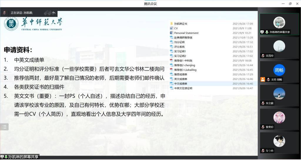 活动伊始,学创部负责人向同学们介绍了本次分享会的大致流程。紧接着进入到本次分享会的第一个专场——保研场。首先是2018级的熊思玥,她向同学们分享自己的保研经历。她分别从个人情况、保研方式和途径、学习规划和准备对保研进行了介绍,并对选取学习的资料进行了推荐。第二个分享的是敖丽娟,她从保研政策、奖励加分、竞赛加分和面试等方面对保研进行了分享,并对不同年级的同学提出了不同阶段的建议。最后的现场答疑环节,同学们根据分享内容有针对性地进行了提问并得到了详细耐心的解答。