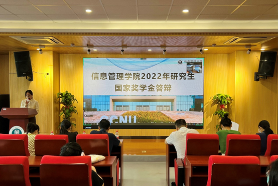 9月21日上午10:00,信息管理学院2022年研究生国家奖学金答辩会在南湖综合楼N10001会议室举办。参加本次答辩会的有信息管理学院党委书记王雨露,信息管理学院副院长卢新元,研究生教学秘书张乾红,信息管理学院党务干事薛莲,图书情报非全日制硕士教育中心办公室主任邵校,信息管理学院团委书记肖丽霞以及研究生各年级学生。此次答辩会由研究生辅导员张思琪主持。