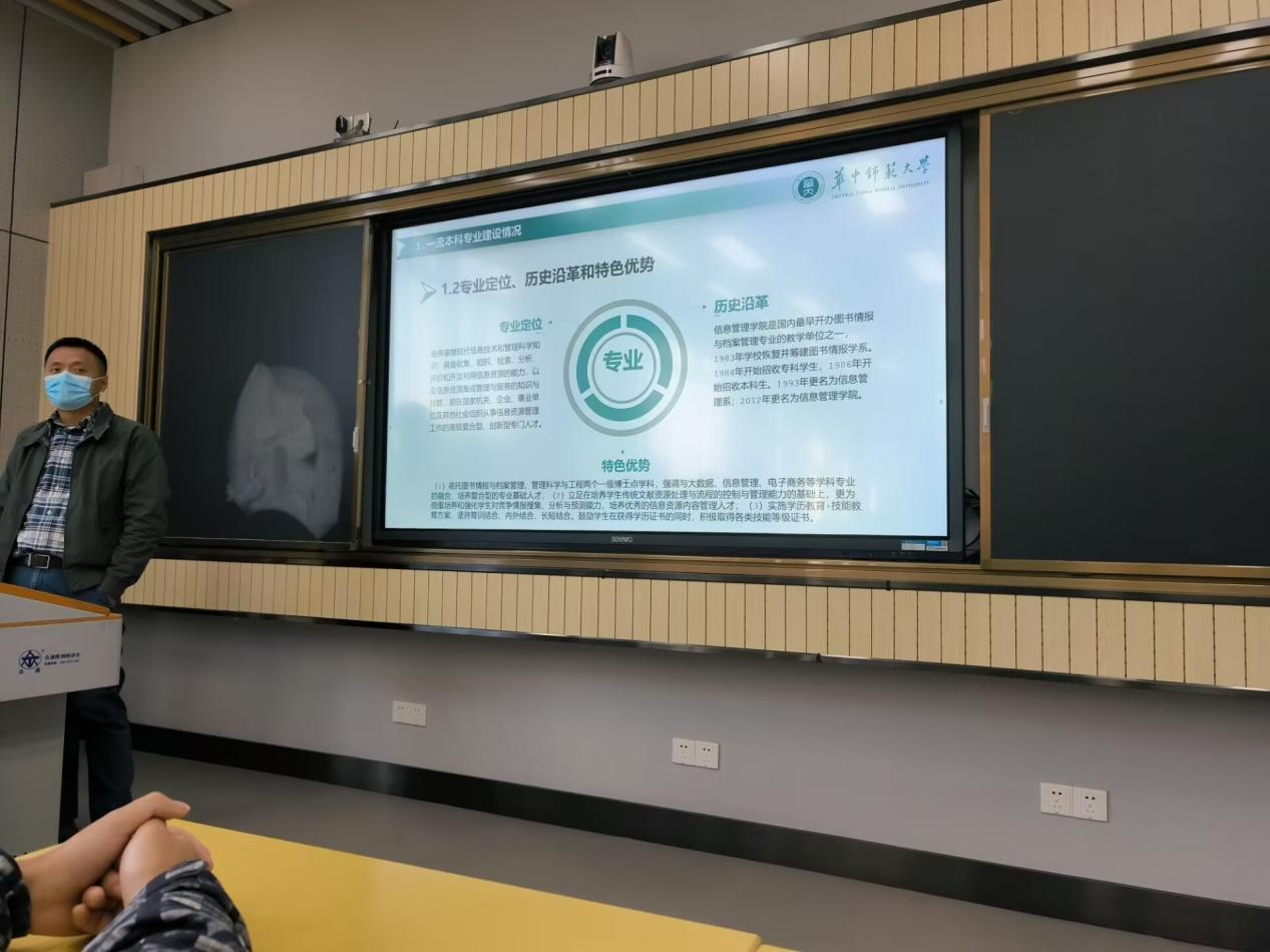 针对专业前景问题,王忠义分别介绍学校、政府机关、企业等方向的职业规划,说明了信息资源管理专业晋升空间的优越性,并且教导学生们要树立正确的专业观、职业观。同时,王忠义指出,信息管理学院图书馆情报与档案管理在第四轮学科评估中被评为B+,与北京大学、中山大学等名校齐名。他希望同学们能够增强专业认同感,深耕学术土壤。
