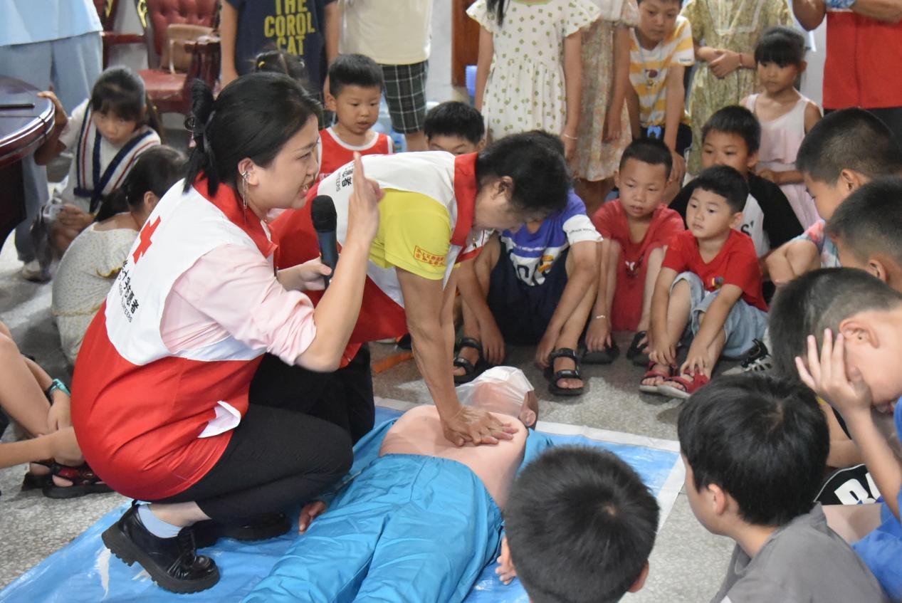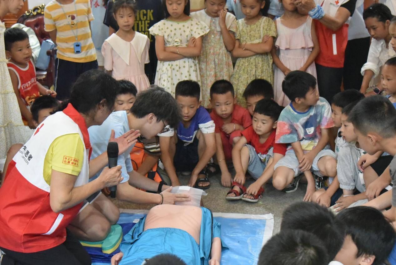 时值三伏天,溺水事故进入高发期,在专业人员的讲解下,孩子们和实践队成员对溺水相关知识有了更进一步的了解,并熟悉了心肺复苏的过程,有效提高了安全意识。在长达一个月的支教生活中,实践队成员会时时宣传防溺水知识,切实承担起监护责任,为孩子们的健康平安筑牢安全防线。
