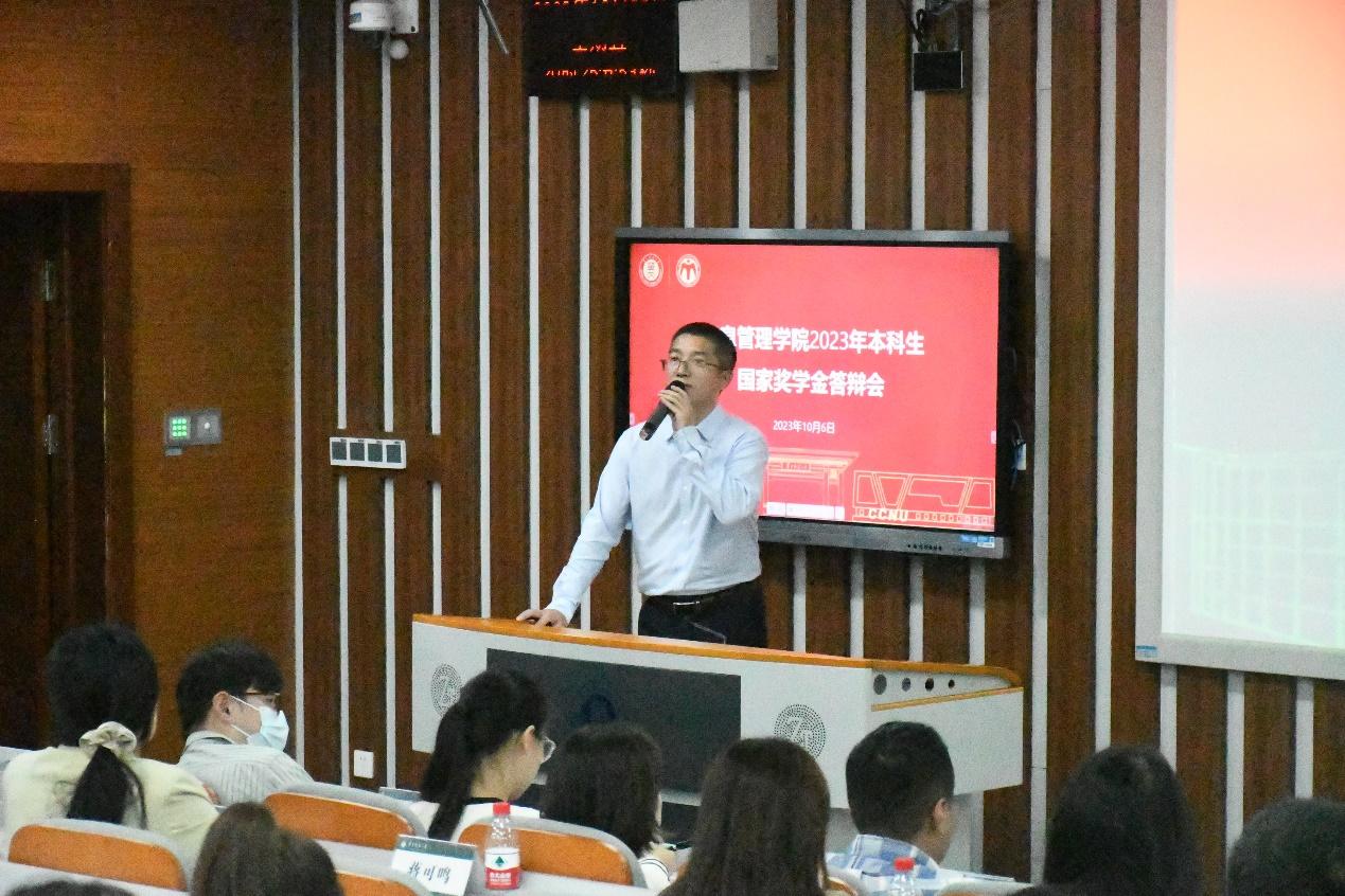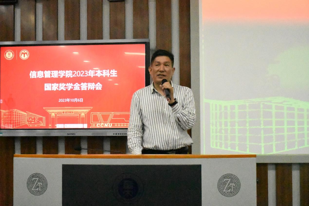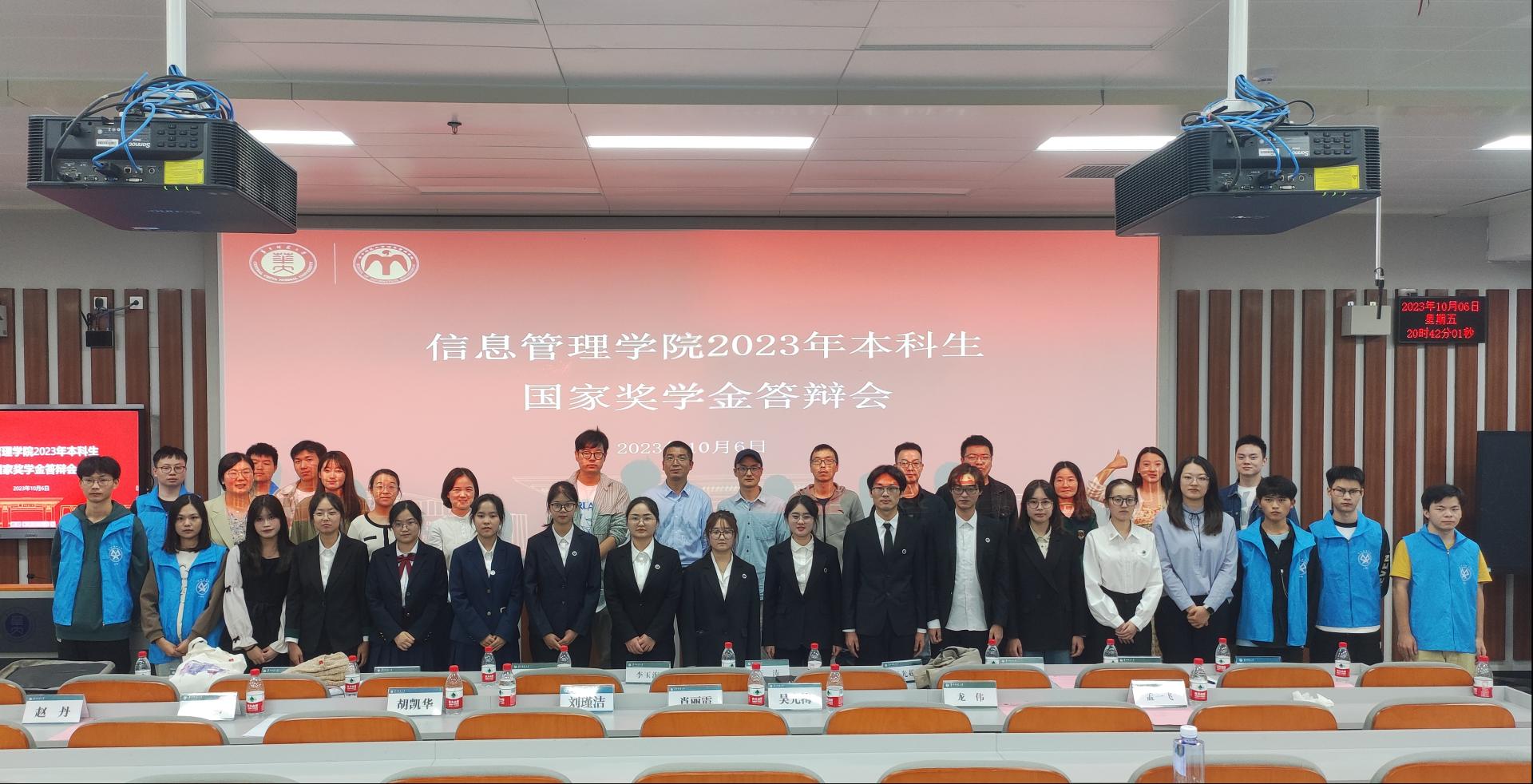 (通讯员 邹佳琪 周孟云)10月6日晚,信息管理学院2023年本科生国家奖学金答辩会于南湖综合楼N319教室举行。学院党委书记王雨露、院长李玉海、院党委副书记王涛出席答辩会,2023级全体本科生及其它年级本科生代表现场观摩学习。答辩评委由各系主任(或教工党支部书记)、班主任代表和学院专职辅导员等构成。