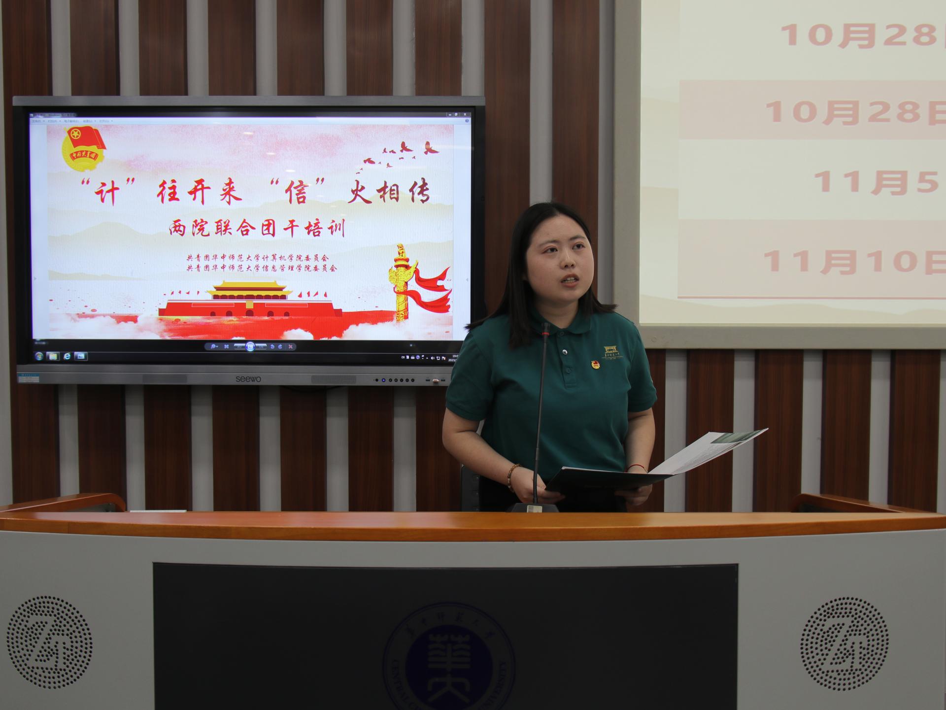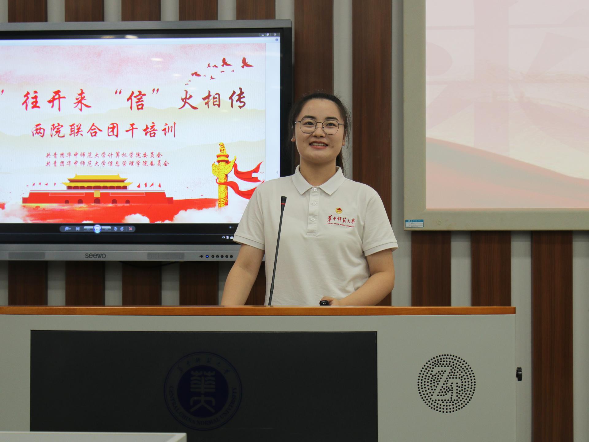 (通讯员 黄高涵 黄丝语 李欣悦 刘耀文 景浩洋)为进一步提高学生骨干的综合素质,增强学生的责任感与使命感,端正学生干部作风与意识形态,10月20日下午,由共青团华中师范大学计算机学院委员会和共青团华中师范大学信息管理学院委员会共同举办的“ ‘计’往开来,‘信’火相传 ”主题团干培训开班典礼暨思想引领教育在南湖综合楼N223教室举行。