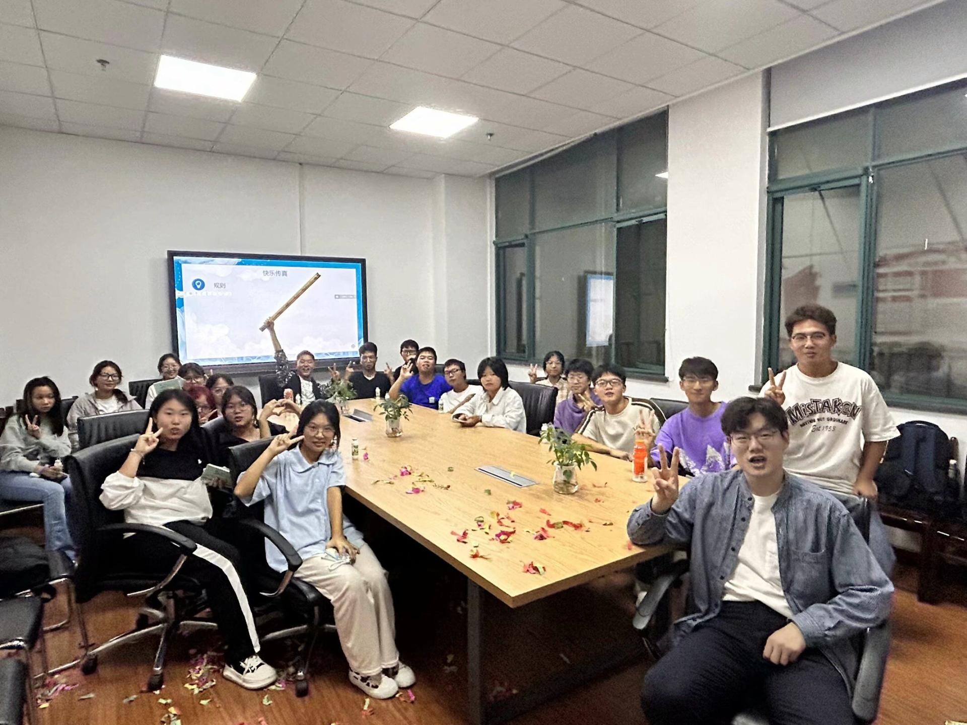 2303班的班主任陈皓老师对同学们提出的疑问进行了解答,同学们也积极分享开学以来的感受,大家一起分享蛋糕并合影留念。