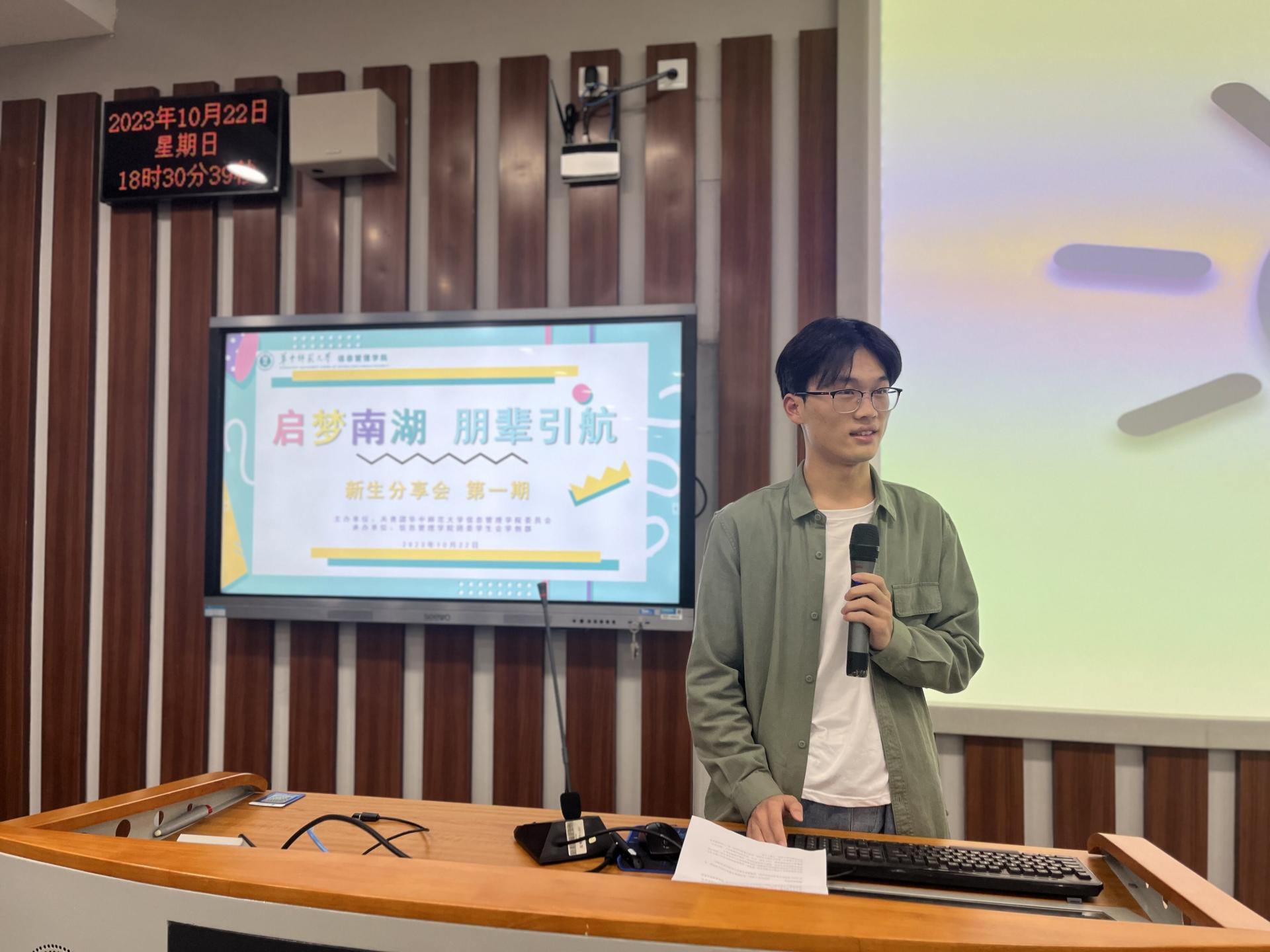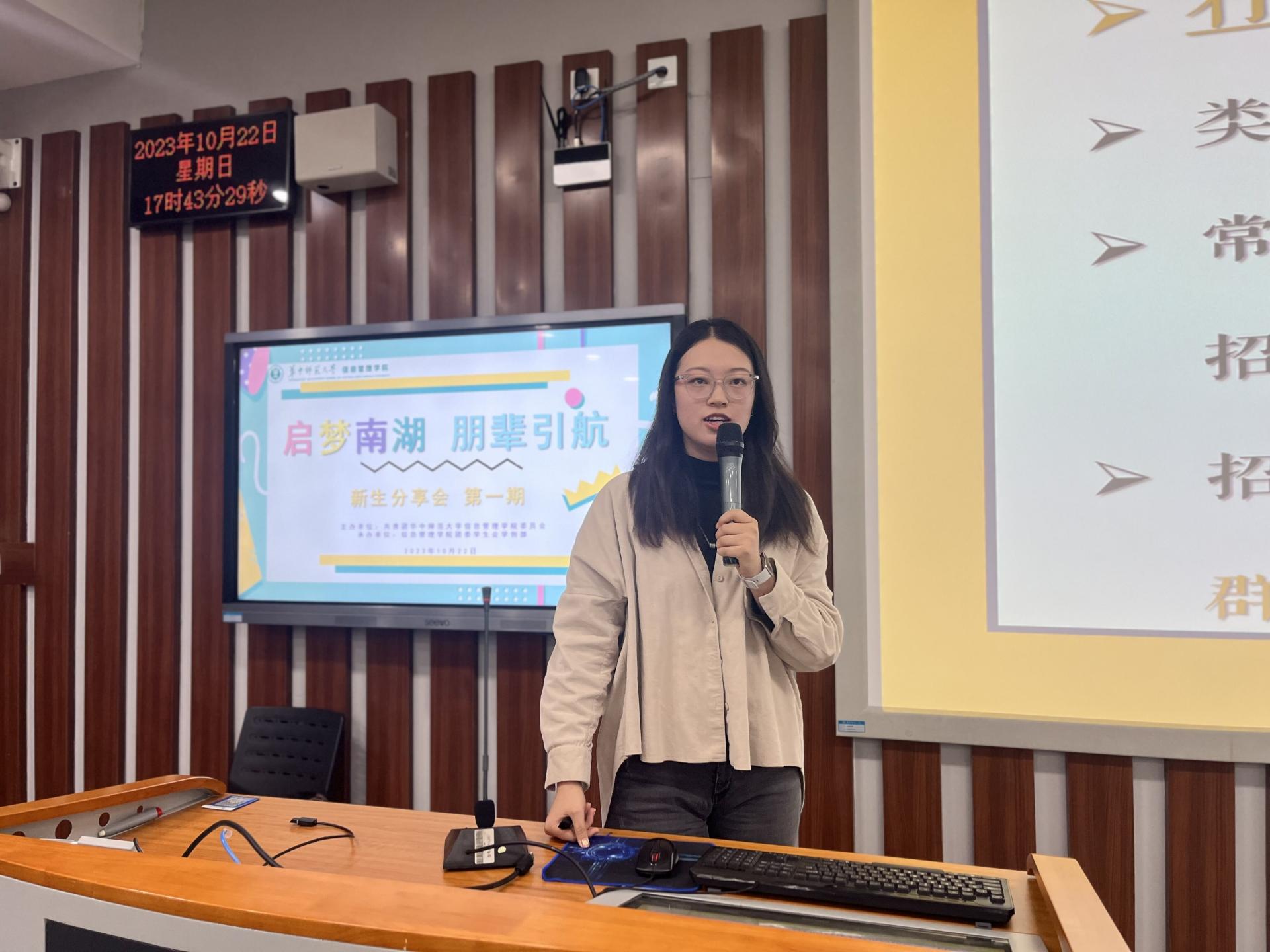 (通讯员 韩俊超 李湘颖 杨晶晶)10月22日晚,信息管理学院2023级新生分享会在南湖综合楼N319教室举行,优秀学子2020级楼雨诺和2021级郑国杰分别就“学生工作”、“学习竞赛”两个专题为2023级新生进行了深入而细致的分享。此次活动旨在帮助新生快速适应大学生活,为他们的未来发展指引方向。