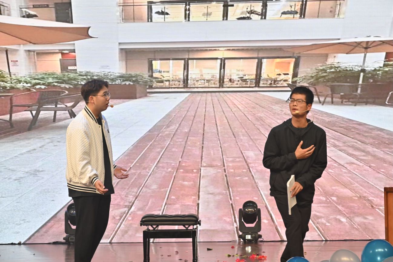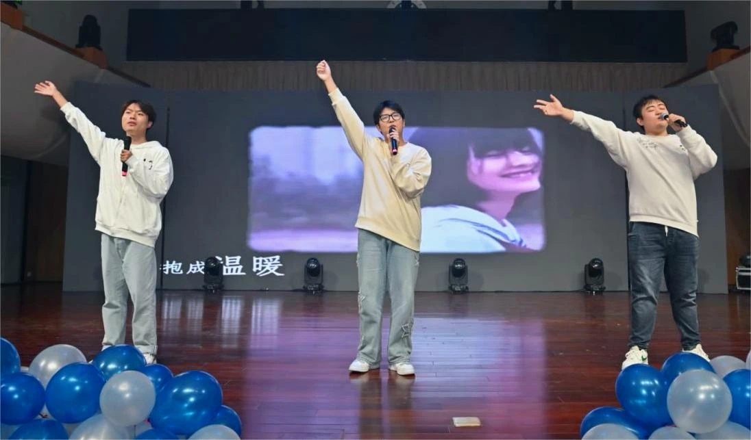 毛婉婷、郑世东等同学带来了《大话西游》片段的趣味配音,让经典影片趣味横生,将潜行科研的嘱托贯穿于幽默诙谐之中;由邱康佳、刘翠蝶等同学带来的吉他弹唱《起风了》,歌声悠扬,与观众们一起唱响青春的旋律,希望同学们把握大学时光的乐章和节奏;晚会尾声,行政老师们倾情朗诵《年少的你》,字里行间都是对新生们的殷切希望和谆谆嘱托。