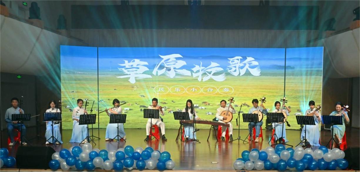 由舞蹈队带来的开场舞蹈《Antifragile》点燃了晚会现场的火热气氛,现场欢呼一片。吴嘉豪、黄绍博、童凯迪三位同学以一首《陪你度过漫长岁月》的歌曲串烧,讲述大学青春四年,有同学们的彼此陪伴,将演绎别样浪漫。由李玉海院长、娄策群老师、杨小溪老师与笛箫协会、阮艺协会、二胡协会共同演奏的《草原牧歌》,则用草原与民乐结合的方式向我们展示了“天苍苍,野茫茫”之壮阔豪迈,传递了大作为、大格局的壮阔情怀。