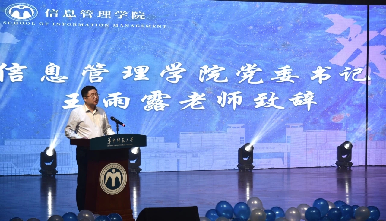 信息管理学院党委书记王雨露在致辞中代表学院,欢迎新加入信管大家庭的师生们,介绍了学院的发展历程;在华师120周年校庆之际,在我院学科创建103周年暨恢复办学40周年之际,表达了对新晋教师新生们“与时代同步伐,与人民共命运”的期望。