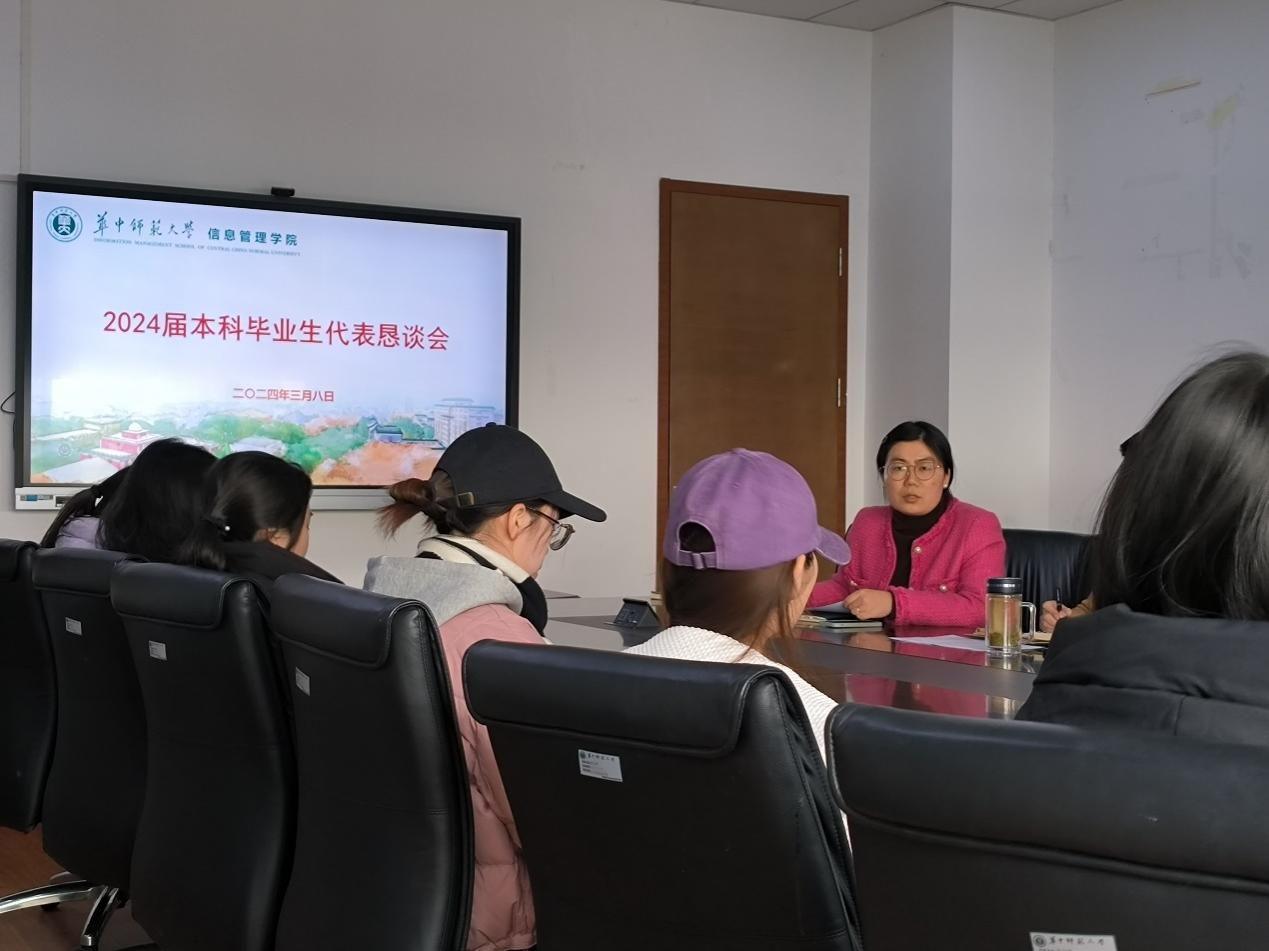 (通讯员 阮娜娜)3月8日下午,我院2024届本科毕业生代表恳谈会在南湖综合楼10003室举行,会议旨在了解考研学生现实困难,解答学生疑问,为学生提供指导。院党委副书记王涛、副院长曹高辉及应届本科毕业生代表参加,会议由辅导员蒋可鸣主持。