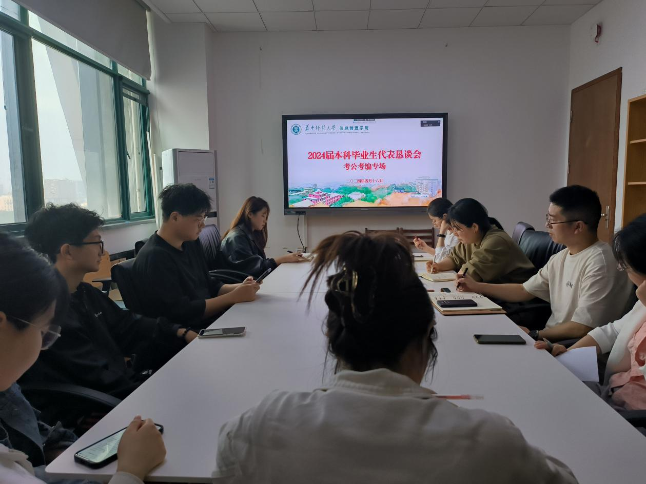 (通讯员 刘瑾洁 阮娜娜)为保障2024届毕业生高质量充分就业,开展好就业精准指导工作,4月18日下午,信息管理学院在南湖综合楼10042会议室召开2024届本科毕业生代表恳谈会第三场——考公考编专场。院党委副书记王涛,特邀嘉宾2019届校友李京琴、2021级研究生张小雅,本科生辅导员蒋可鸣及2024届本科毕业生代表参加。会议由本科生辅导员蒋可鸣主持。