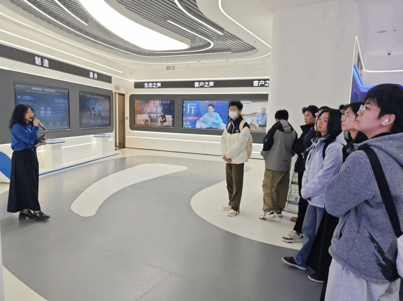 随后,在工作人员的引导下,同学们沉浸式走入企业展厅,深入了解达梦数据库在能源、党政、教育、海外市场、生态等关键领域的深度应用案例,直观感受到达梦企业在数据库领域的硬核实力。现场生动的讲解与清晰的数据分析图表,让师生们真切体会到国产数据库的创新活力与发展前景。同学们也借此明晰了专业知识的落地应用场景,找准了自身专业能力提升的方向,坚定了深入学习数据科学与数据分析的决心。