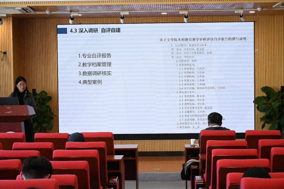 王洪涌教授首先根据自身审核评估工作经验以及对认证和评估要求的理解,结合文学院的本科教学和管理工作,与我院教职员工探讨了迎接新一轮本科教育教学审核评估工作的方法。