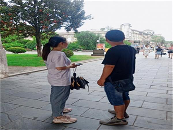 进入景区后,队员发现旧址占地面积并不大,且开放区较少。通过旧址官方标牌,可发现是近几年才被列为江西省文物保护单位,还未被深入开发,建设也不算完备。游客大多为江西人,在问卷调查中他们也都表示应立足当地实际情况加大对江西红色资源的利用的同时也要注重遗迹的保护。在走访过程中我们有幸采访到了由政府委派的几位修复旧址的工作人员,在深入交流后队员了解到,由于旧址处在闹市区人员车辆较多,旧址的保护情况并不理想,许多墙面都有受损。但较大的客流量使得周边餐饮以及旅游业得以发展。除了相关工作人员,队员还采访了一些游客和周边人群,他们纷纷表示景区的开发与保护并未很好的结合,唯有做足宣传,逐步扩大影响力才能加强大家对革命遗址的保护。