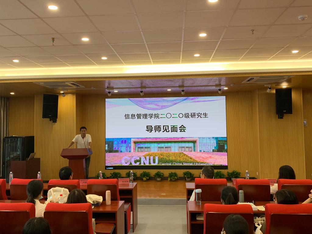 (通讯员 林晓晴)9月16号下午两点半,由曹高辉老师副院长主持的2020级研究生导师见面会在南湖综合楼10004报告厅拉开帷幕,湖北省科技信息研究院李勇院长、信息管理学院曹高辉副院长、王光超老师、李静老师、叶孔森老师等出席见面会。