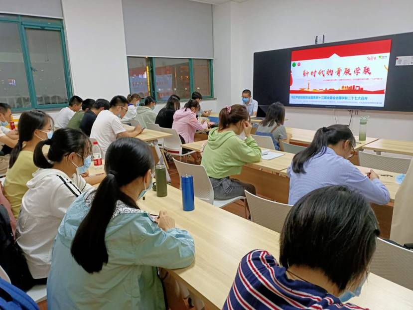 中华全国青年联合会第十三届委员会全体会议、中华全国学生联合会第二十七次代表大会于8月17日至18日召开并取得了圆满成功。同学们在学习过程中了解到了习总书记对中国青年的殷切期望:“我国广大青年要坚定理想信念年,培育高尚品格,练就过硬本领,用于创新创造,矢志艰苦奋斗,同亿万人民一道,在矢志奋斗中谱写新时代的青春之歌”。在观看视频后,感慨万分,激起了熊熊奋斗热情。