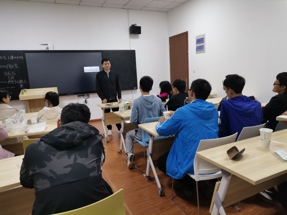 然后班主任池毛毛致词,鼓励同学们积极主动适应大学生活,踊跃参与大学活动,锻炼提高自己的各项能力,当然也告诉同学们,今后无论是生活中还是学习上若遇到问题也可以和他交谈诉说,他会帮助同学们解决问题。