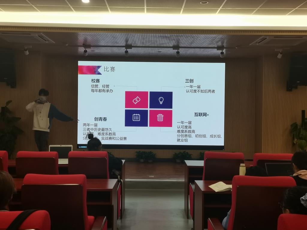回顾大致结束后,王嘉宁向成员介绍了电子商务协会的日常活动形式与协会组织架构。他表示周例会主要以授课与小组讨论研究并分享两个部分组成,在日常工作中,协会注重培养成员产品思维,鼓励成员参加三创、“互联网+”与创青春等重大赛事。随后,王嘉宁向成员介绍了协会的部门分工及师徒制,即由一位协会老成员带领多名新成员结成师徒小组开展项目。