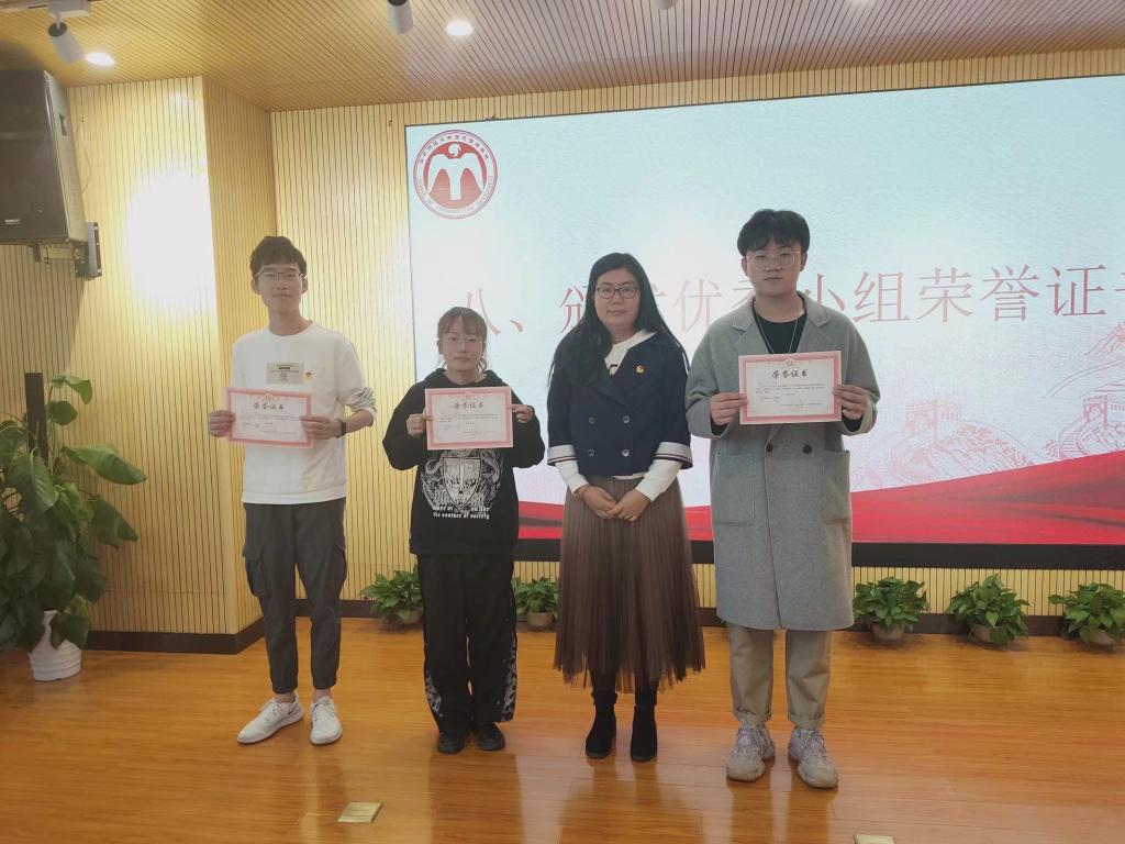 在之后的颁奖环节中,倪嘉蔚、马梦圆为优秀学员颁奖,蒋可鸣为优秀小组颁奖。接着蒋可鸣就此次团干培训作总结性讲话,她向参加此次团干培训的109名学生干部表示祝贺,祝贺他们在培训中收获实用的技能和真挚的友谊。她表达了对所有学生干部的殷切期望,希望学员们都能成为忠诚、努力、有格局的大学生。在今后的团学工作中不忘初心,互相学习,互相帮助,同甘苦,共进退,成为团委学生会新一代希望。典礼接近尾声,主持人组织全体人员进行集体合影,宣布此次团干培训圆满结束。