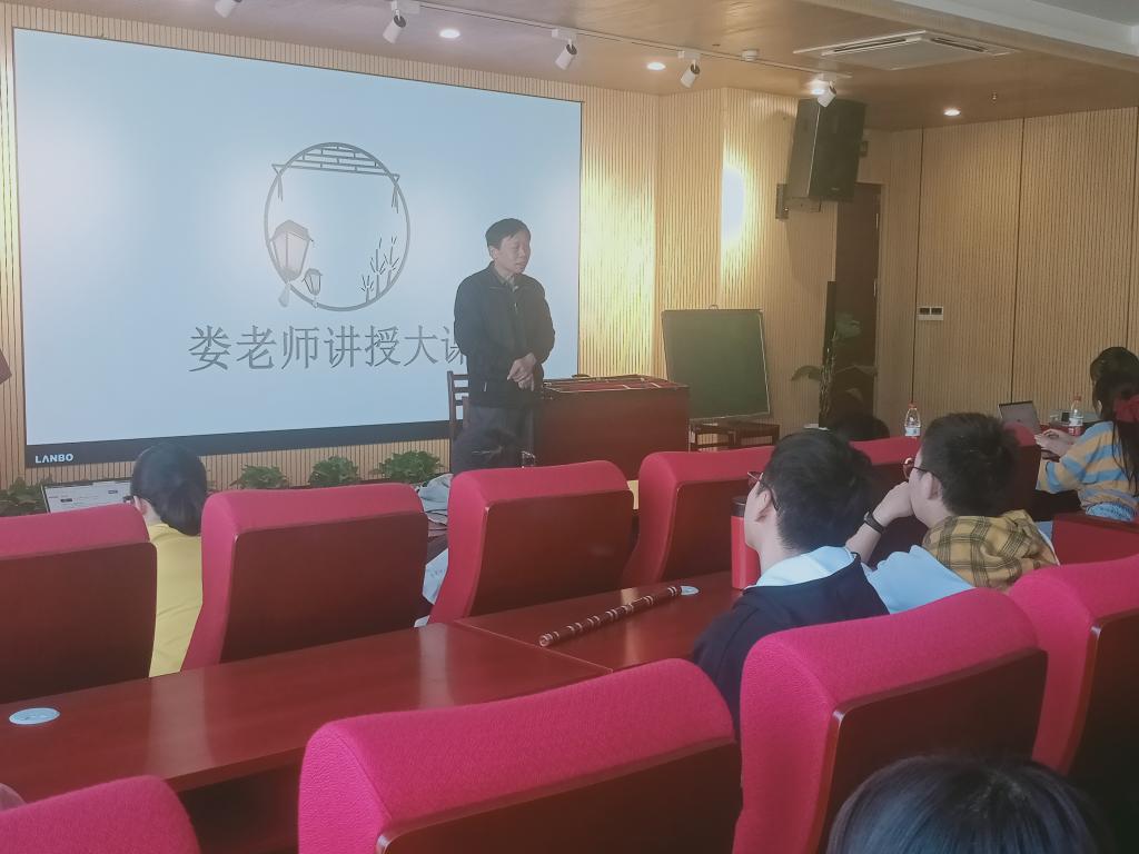 片刻休息过后,笛箫协会首次大课正式开始。娄策群简单介绍了我校开设的通识核心课程“中国民族乐器演奏与赏析”,他建议同学们可以选修该课程以了解更多的民族器乐知识。随后,娄教授讲述了笛、箫的起源和历史,谈到笛、箫是中国最古老的民族乐器之一,其中骨笛是最早的笛乐器,他还为成员们介绍了笛、箫、葫芦丝、巴乌的结构及基本的吹奏技巧,分析了各乐器的相似与差别,如:笛、箫的吹奏方法相似,但有“横吹为笛,竖吹为箫”的说法。娄教授还着重介绍了吹奏时的正确的呼吸方法,分别是胸式呼吸、腹式呼吸,他提示到成员们应该有意识地练习吹奏的气息。最后,娄教授讲到学习乐器要由简入繁,要从最简单的吹响开始练习,不可急于求成。