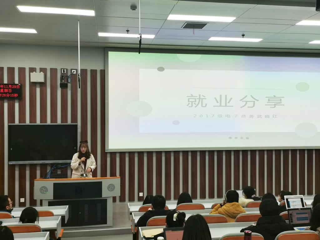 (通讯员 李佳琪 邢国伟)11月29日晚,华中师范大学信息管理学院2018级就业分享会在南湖综合楼N301教室举行。本次活动邀请到了信息管理学院2017级本科生武晓红为主讲人,分享其在求职就业方面的经验。活动由2018级辅导员卢旺主持。