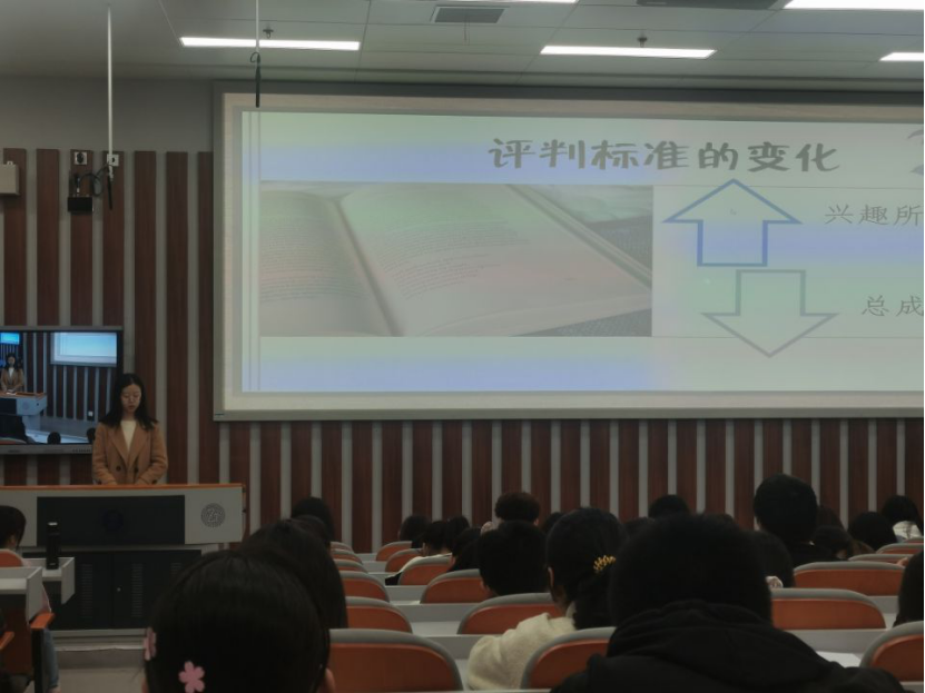 最后是管理科学与工程的谭知止同学分享她的学习方法。谭知止同学认为学习时要保持一颗好奇心,用新奇的眼光看世界,这样你会收获良多。第二,学习时要设立目标,有目标才会有动力。在综合能力方面谭知止同学认为辩论队对她的帮助很大,也让她感受到快乐。