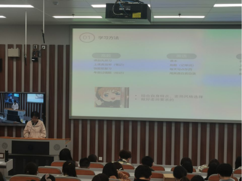 紧接着是电子商务专业的乔雨杉同学进行分享。乔雨杉同学认为人各有所长,都有自己的特长,每个人要发现自己的长处。在学习方面,要做到课后整理与章末总结。同时,有些学科需要通读课文,勾画重点,紧跟老师思路。整理体系,使知识点成为独立的记忆也是乔雨杉学习的一个技巧。